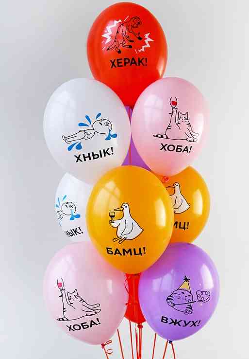 Ваша вечеринка или день рождения теперь может быть еще веселее — ведь для этого есть воздушный шарик с мемами вжух, хоба, бамц и хрясь! Эти латексные шары — настоящий маст-хэв для фотозоны, поздравления друга, коллеги и всех, у кого есть чувство юмора. Каждый шар легко надуть гелием или воздухом на палочку — выбирайте как больше нравится. Качественный натуральный латекс безопасен для взрослых и детей, а благодаря хорошей прочности шары долго летают. В наборе 50 пастельных шаров с рисунком: тут котик с поднятой лапой, гусь с бокалом, человек в луже слез и другие прикольные тематические образы. Как часто в вашей жизни наступал день — бамц или хнык? Теперь можно украсить любое событие именно так, как подсказывает настроение: смешной котик на др коллеги или забавный сурикат для поздравления подруге. Такой большой пакет шаров поможет сделать оформление запоминающимся.